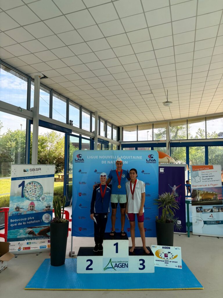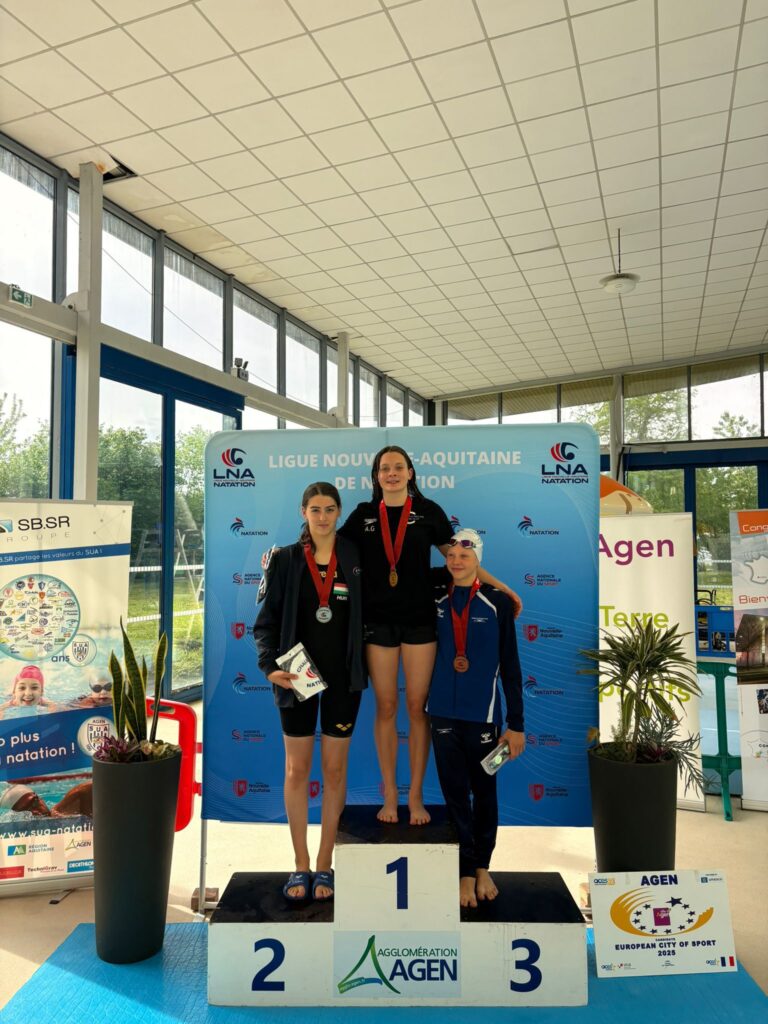 À Agen, le groupe composé de Samuel, Mathilde, Salma et Léa, encadré par Noémie et Marc, a su répondre présent face à une concurrence relevée. Emilien, tout juste descendu de son stage en altitude à Font-Romeu, est venu compléter l’effectif. Samuel confirme sa belle progression dans les rankings U15. Engagé sur le 200 brasse, il se situe désormais à seulement 73 centièmes du Top 8 français. Une performance encourageante qui laisse entrevoir de belles perspectives en vue de l’objectif fixé : intégrer la finale lors des Championnats de France à Châlons. Mathilde améliore significativement deux de ses meilleures performances personnelles, avec un gain de près de deux secondes sur le 100 papillon et de trois dixièmes sur le 50 papillon. Ces progrès confirment le travail engagé à l’entraînement et maintiennent pleinement son objectif de qualification pour les Open de juillet. Le prochain rendez-vous, le Challenge National n°2 à Dijon, sera déterminant dans cette quête. Salma et Léa ont, de leur côté, fait preuve de caractère et de solidité mentale. Dans des courses dites « pièges », où la gestion tactique est essentielle, elles ont su aller chercher les ressources nécessaires pour monter sur le podium. Des performances qui témoignent de leur engagement et qui maintiennent intact leur objectif de qualification pour les Championnats Élites.