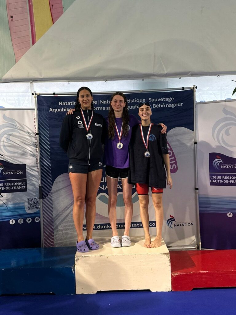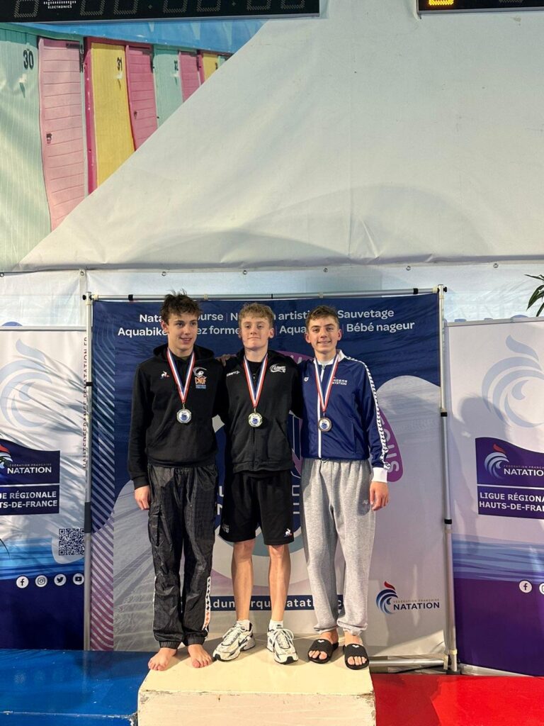 À Dunkerque, le groupe section 4/3 , accompagné par Romain et Constant, a dû évolué dans le même format de compétition particulier en « one shot », sans finales donc. Un système exigeant où chaque course doit être parfaitement maîtrisée, sans possibilité de rattrapage… Même si aucune qualification n’a été décrochée sur cette étape, les nageurs ont su livrer de nombreuses performances solides et encourageantes. Dora s’illustre avec une très belle moisson de médailles, repartant avec trois médailles d’argent et une médaille d’or. Gaspard confirme également son potentiel en s’imposant sur le 50 brasse et en montant sur la troisième marche du podium sur le 200 brasse. Maram réalise sans doute l’un des week-ends les plus complets, en multipliant les podiums : troisième sur le 50 brasse.